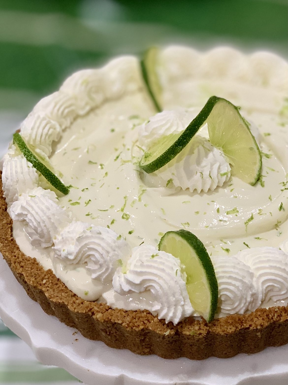 Pipe the remaining whipped cream on top and decorate with lime wedges. Zest 1/2 regular lime over the pie. Slice and serve! This pie is just a perfect bite – creamy, sweet, tart and crunchy. This is my kind of pie. Enjoy.