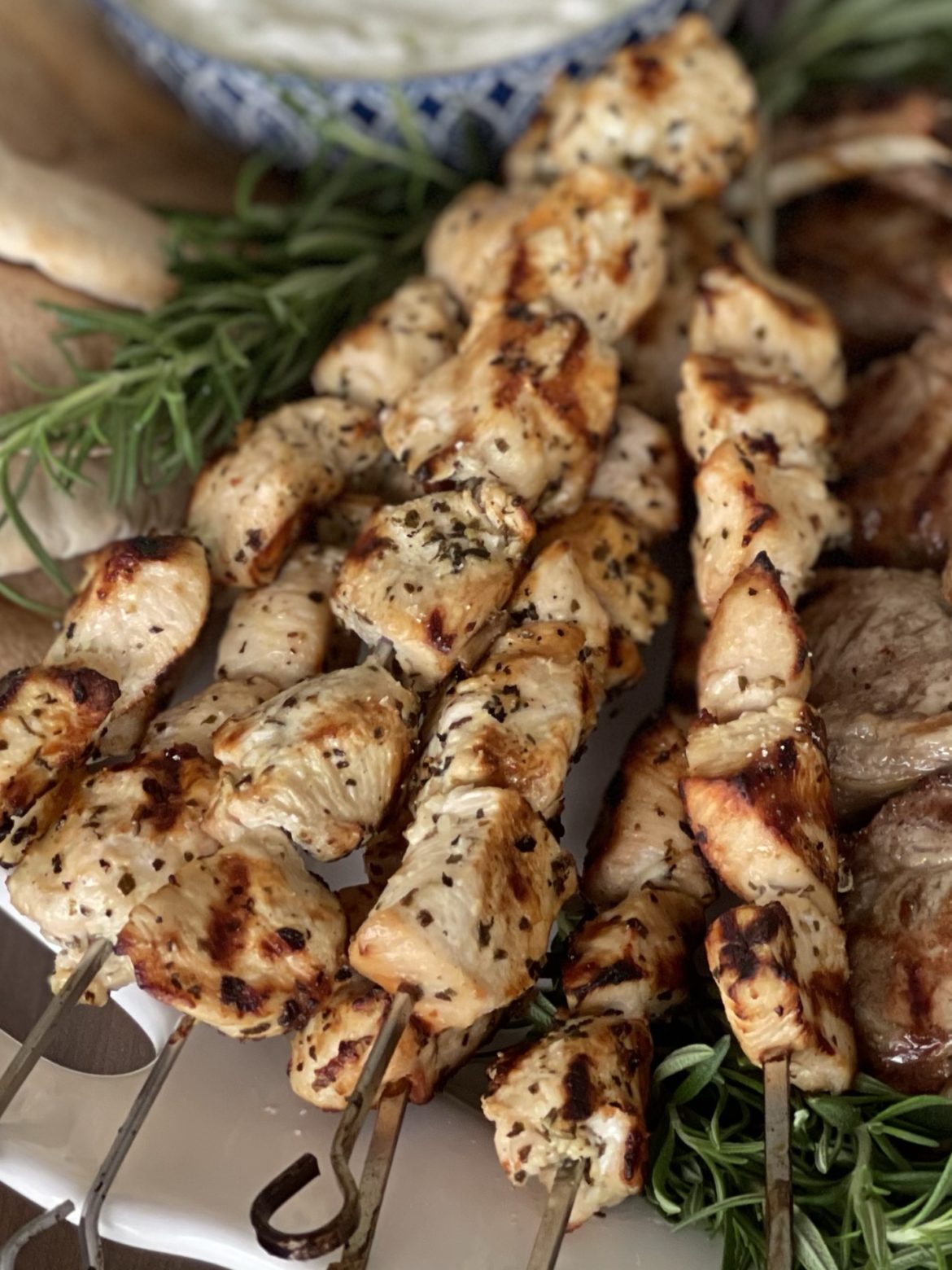 Thirty years ago I worked near a Mediterranean restaurant that served the most incredible chicken souvlaki. It was one of my favorite go-to lunch places and I ate there at least twice a week. Tasty chicken perfectly grilled on a skewer and served with warm pita bread, tomatoes, lettuce and tzatziki sauce. I can still taste it. So amazing!