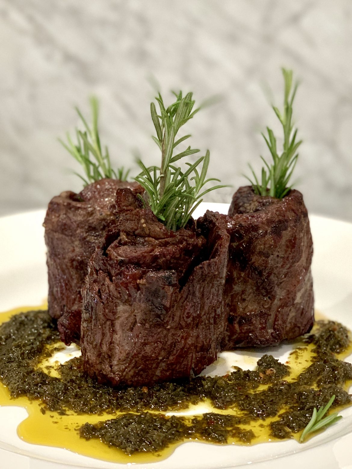 It a delicious sauce/marinade created by gauchos in south America and commonly attributed to Argentina, Brazil and Uruguay. I first tried it in Hialeah, FL at an Argentinean restaurant Graziano’s. They have an amazing steakhouse with an adjacent market including a full bakery and butcher shop. Sauce consists of parsley, red pepper flakes, garlic, oregano, red wine vinegar and salt and pepper. For years I bought Graziano’s chimichurri, but they are not so close to me and I’ve been making my own. I’ll link a recipe soon.